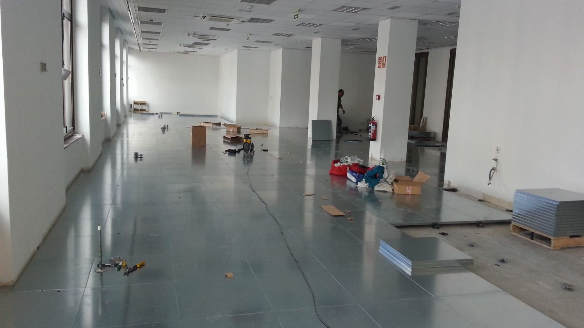 De esta forma, conseguimos dotar a todos los puestos de trabajo de las oficinas de una red de cableado necesario, instalando un falso suelo visible, pisable y resistente.